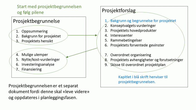 - Ta utgangspunkt i mandatet for konseptfasen, og start med å utarbeide den første delen av prosjektbegrunnelsen.