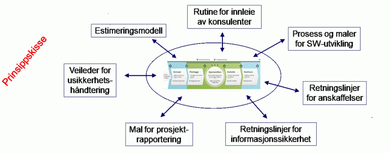 - Knytningen mellom modellens faser/aktiviteter og elementer fra virksomhetens eget intranett blir oversiktlig og tydelig.